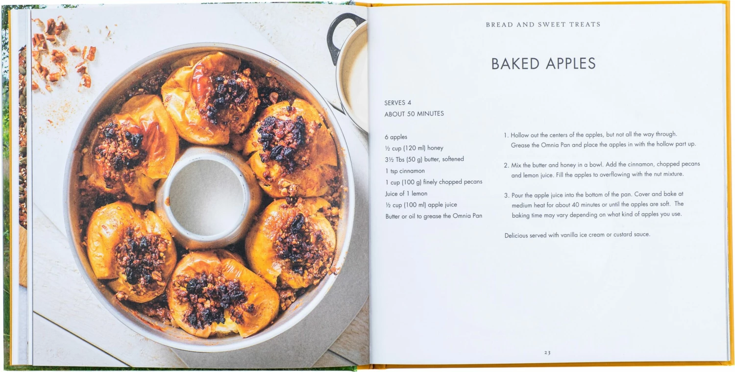 Bogen er på 130 sider og indeholder inspirerende stemningsbilleder og 46 spændende opskrifter og appetitlige billeder af forskellige retter, du kan tilberede på din Omnia Stovetop Oven.