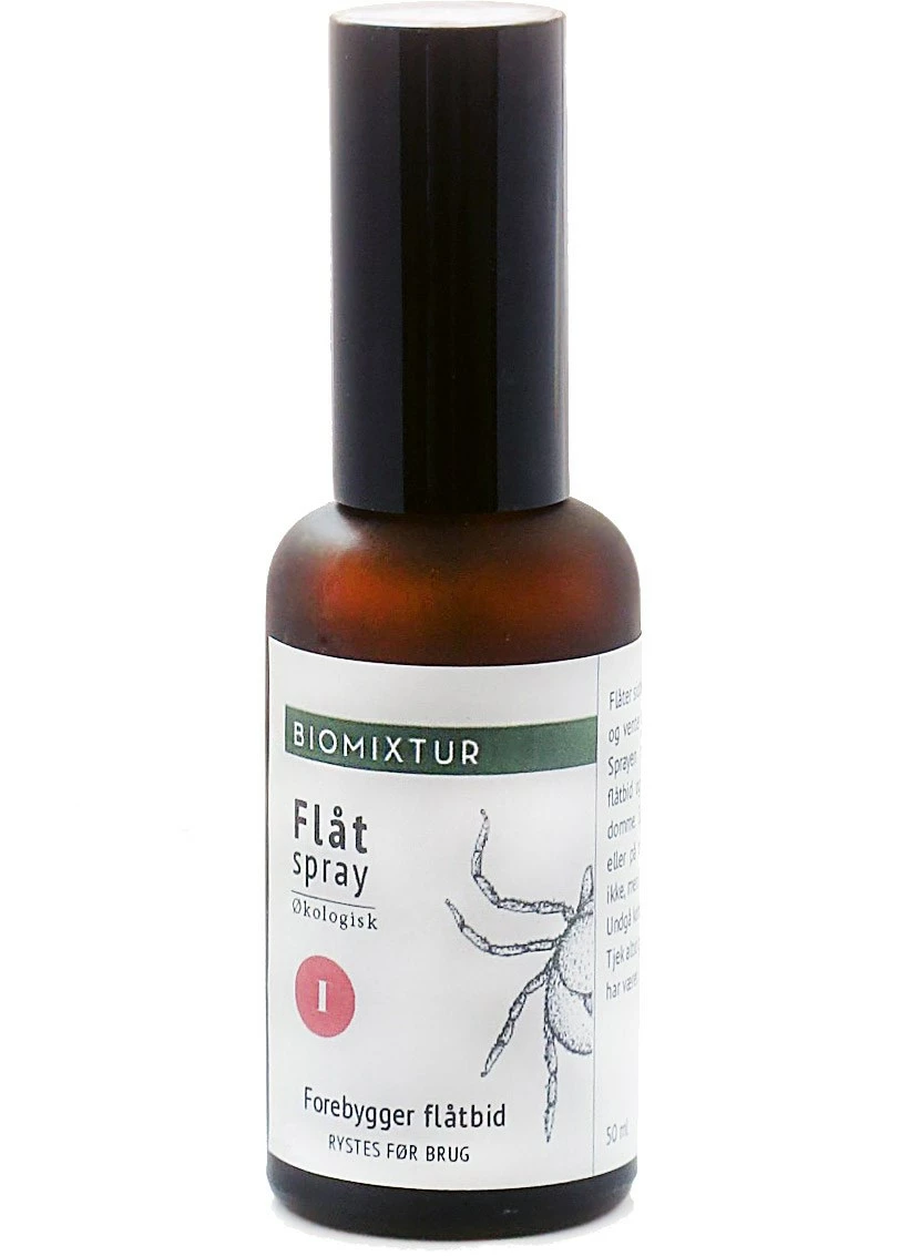 Som et effektivt værn mod de små sataner har vi taget denne bæredygtige Biomixtur ind, som er en (for os mennesker) ganske velduftende spray, der er sammensat af udelukkende økologiske ingredienser. Sprayen er som sådan ikke giftig for flåten, men den kan ikke lide duften og holder sig derfor på behørig afstand.