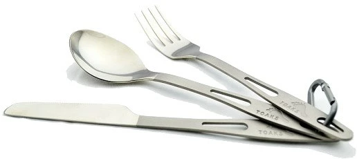 Toaks har her lavet et komplet bestiksæt bestående af kniv, ske og gaffel, hvor det hele selvfølgelig er fremstillet af uhyre let og stærkt titanium.